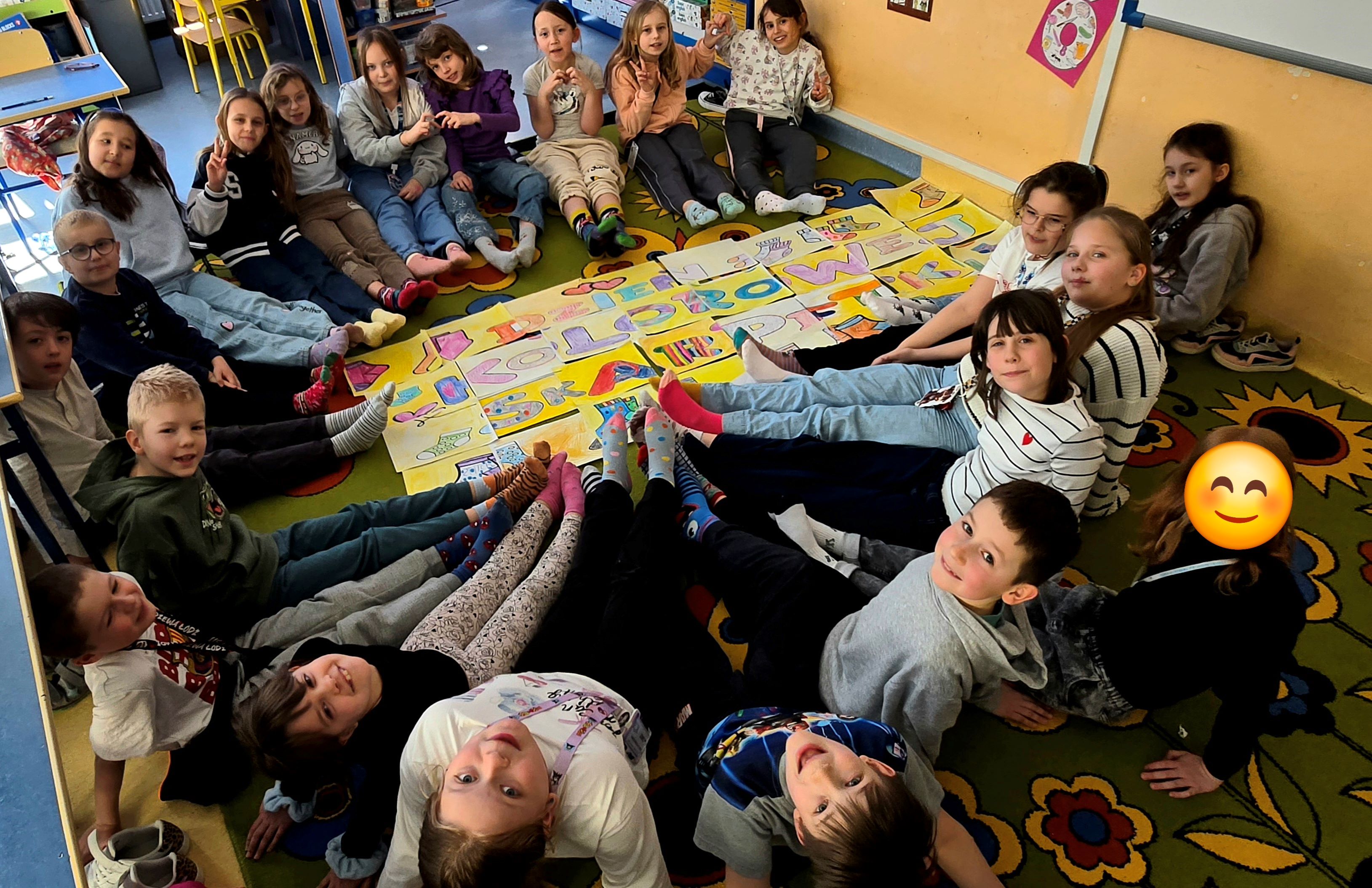 W miniony poniedziałek uczniowie klas 1 - 3 obchodzili Dzień Kolorowej Skarpetki. Były filmy edukacyjne oraz rozmowy o tolerancji, życzliwości i wsparciu dla osób z zespołem Downa. Na znak solidarności dzieci założyły kolorowe skarpetki i wykonały prace plastyczne.