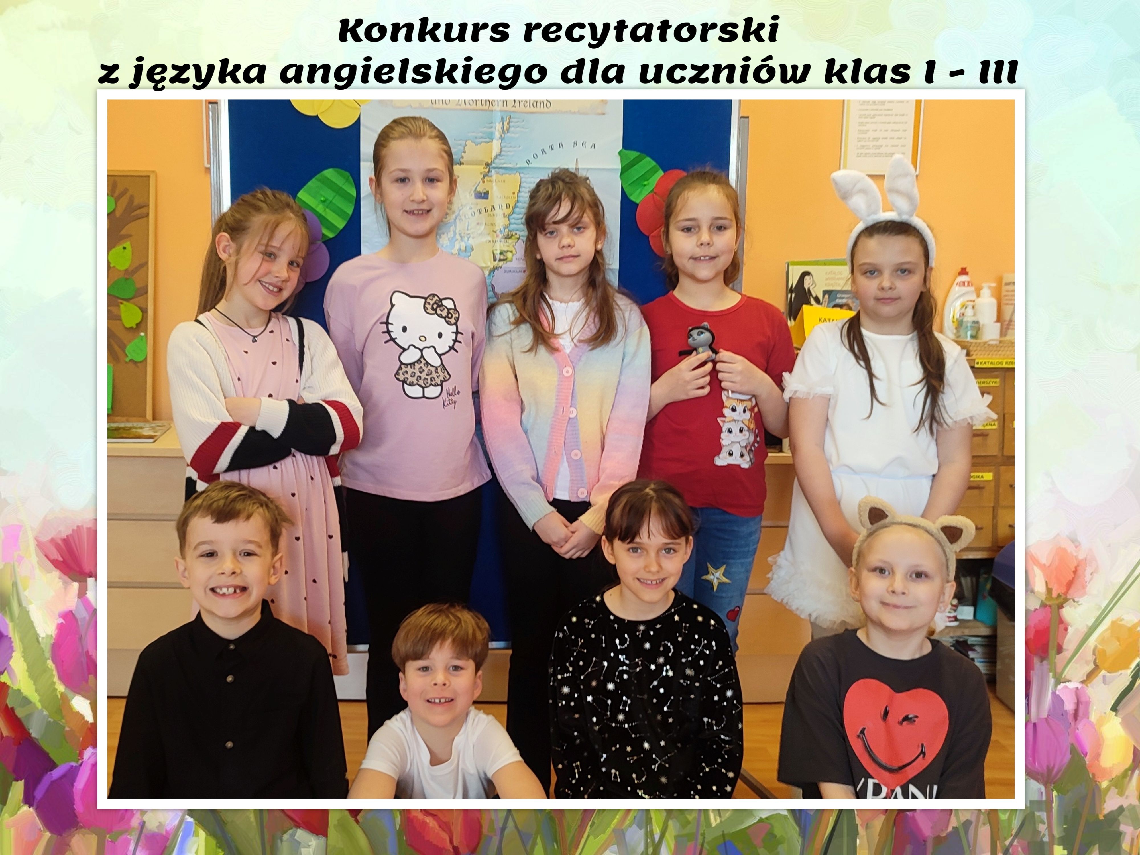 W dniu 30 marca 2026r. odbył się coroczny konkurs recytatorski z języka angielskiego dla uczniów klas I – III. Uczestnicy w ciekawy sposób zaprezentowali swoje umiejętności lingwistyczne, a niektórzy dodatkowo wzbogacili swój występ o przepiękne dekoracje. Gratulujemy wszystkim!