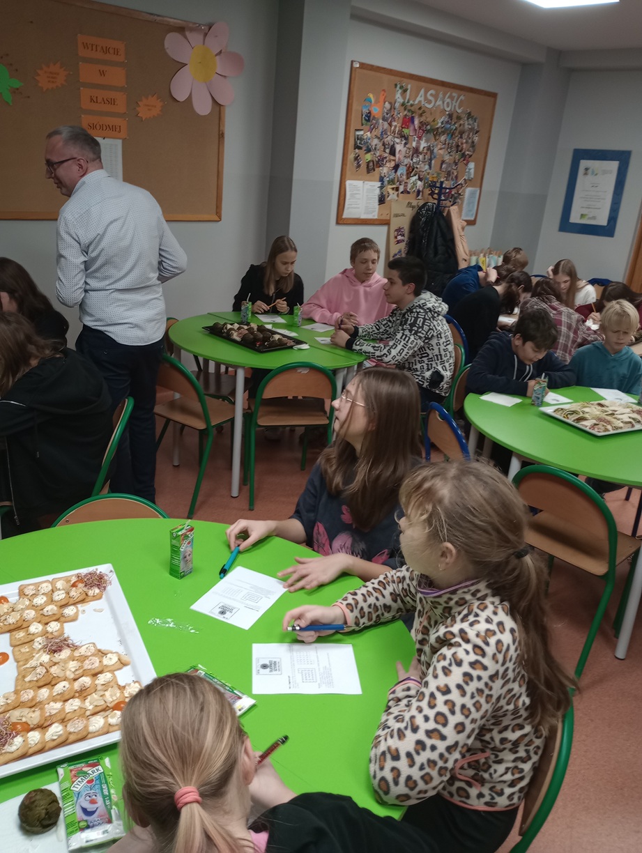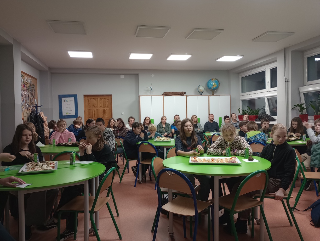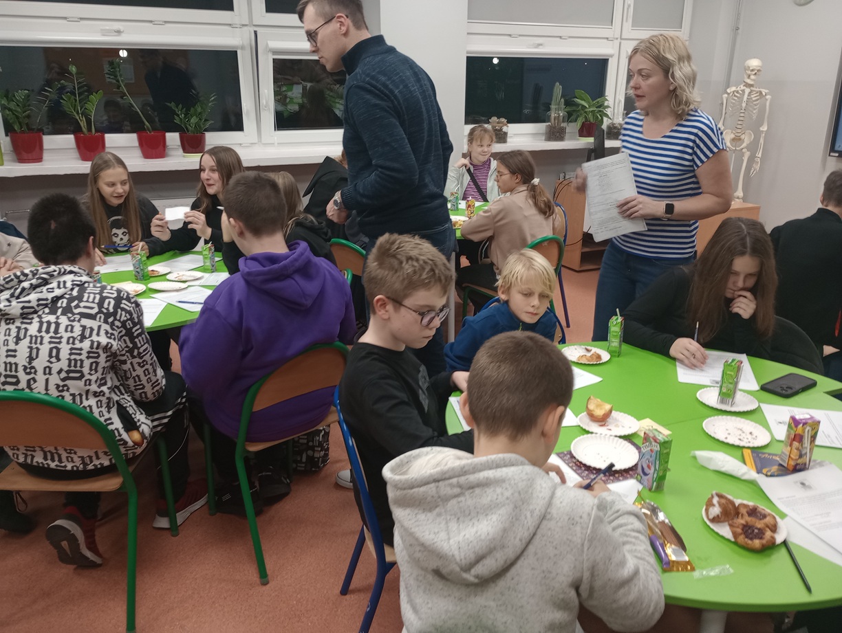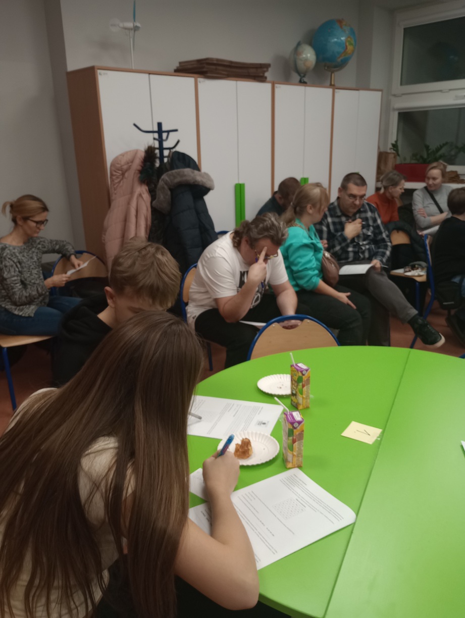 Choć spotykaliśmy się po lekcjach, to uczestnikom nie brakowało energii do działania – część dofinansowania przeznaczyliśmy na smaczne i zdrowe przekąski i napoje. Uczniowie i ich rodzice z zaangażowaniem łamali szyfry, samodzielnie lub w grupach.