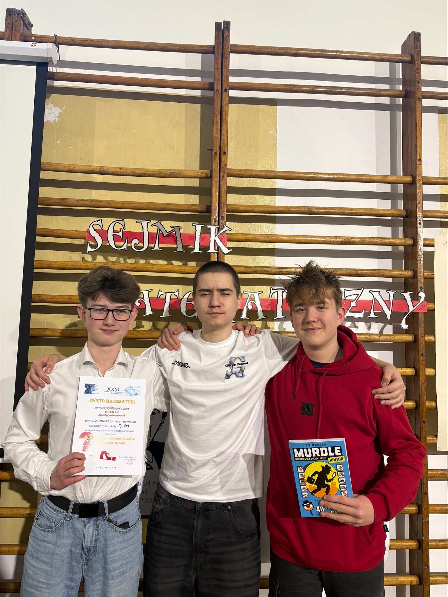 W środę 25 lutego nasi uczniowie wzięli udział w Sejmiku Matematycznym organizowanym przez XXXI Liceum Ogólnokształcące w Łodzi. W wydarzeniu rywalizowało 17 drużyn, a tylko cztery z nich zostały wyróżnione - w tym zespół z naszej szkoły.