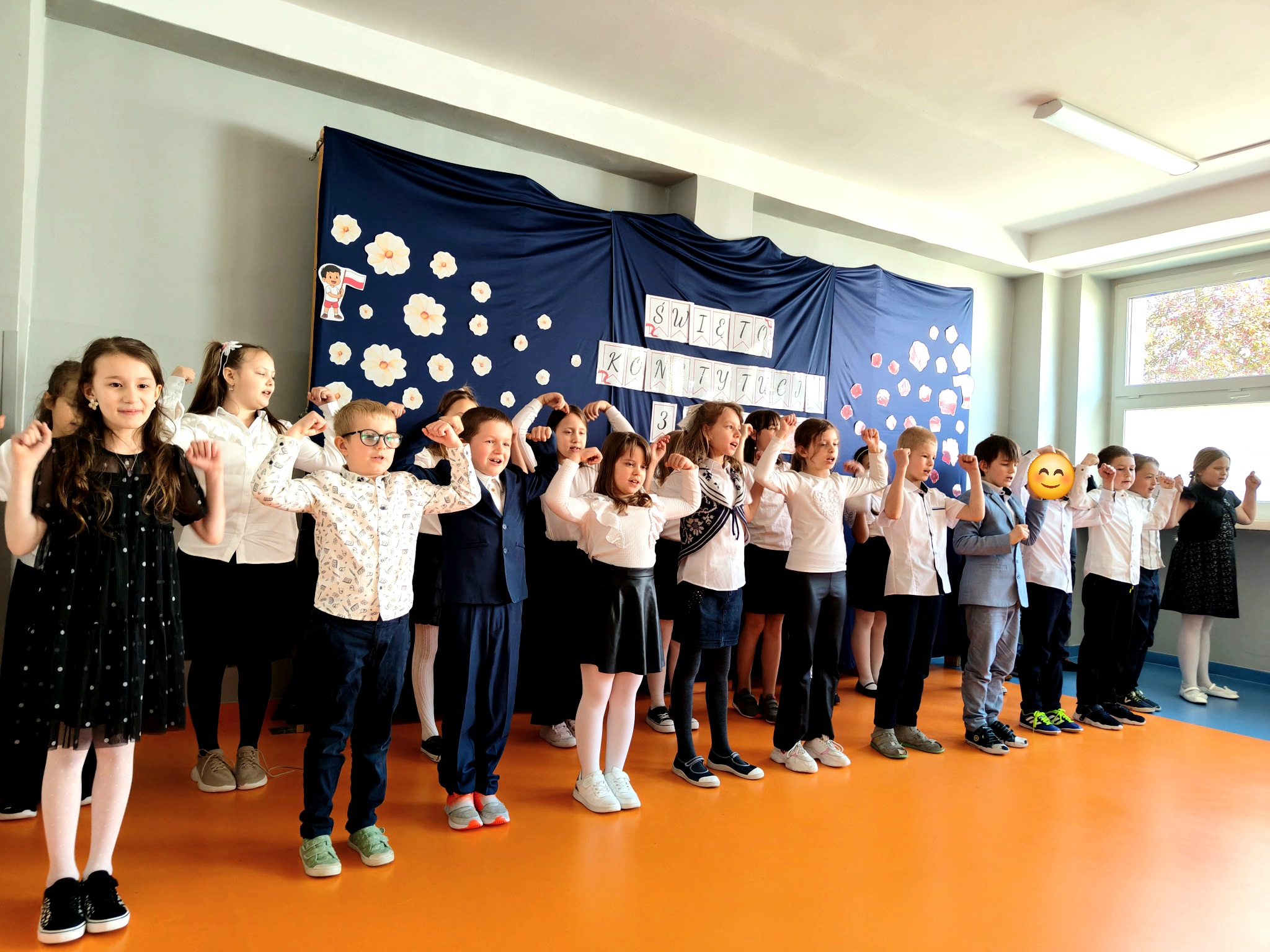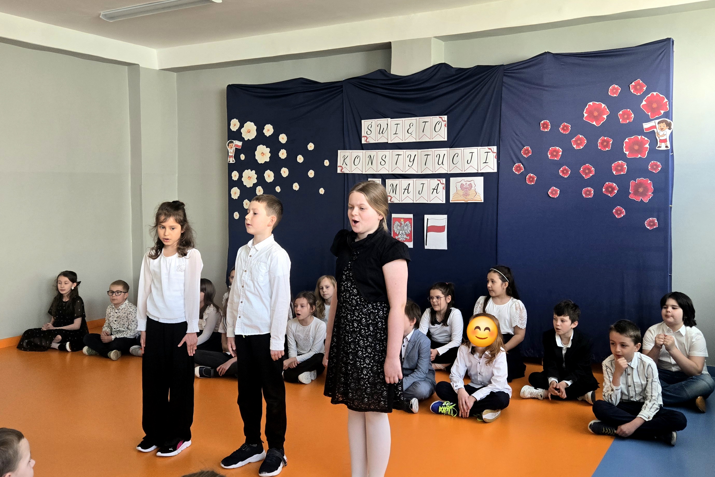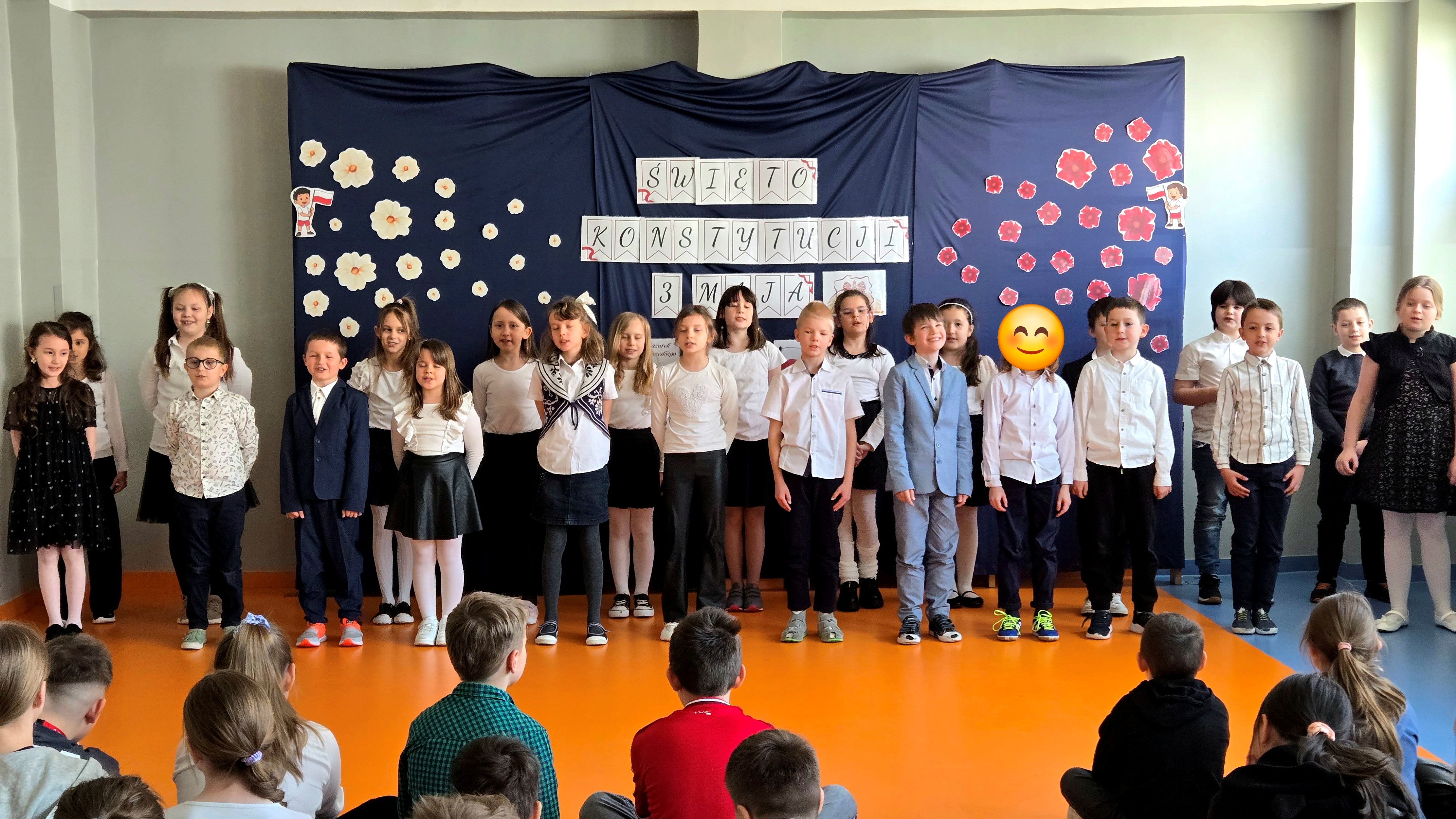 Klasa 2c przygotowała uroczysty apel z okazji Święta Konstytucji 3 Maja. Uczniowie zaprezentowali krótką inscenizację oraz wykonali kilka piosenek, wprowadzając wszystkich w patriotyczny nastrój. Dodatkowo własnoręcznie przygotowali kokardy narodowe, którymi obdarowali koleżanki i kolegów z klas 1 - 3.