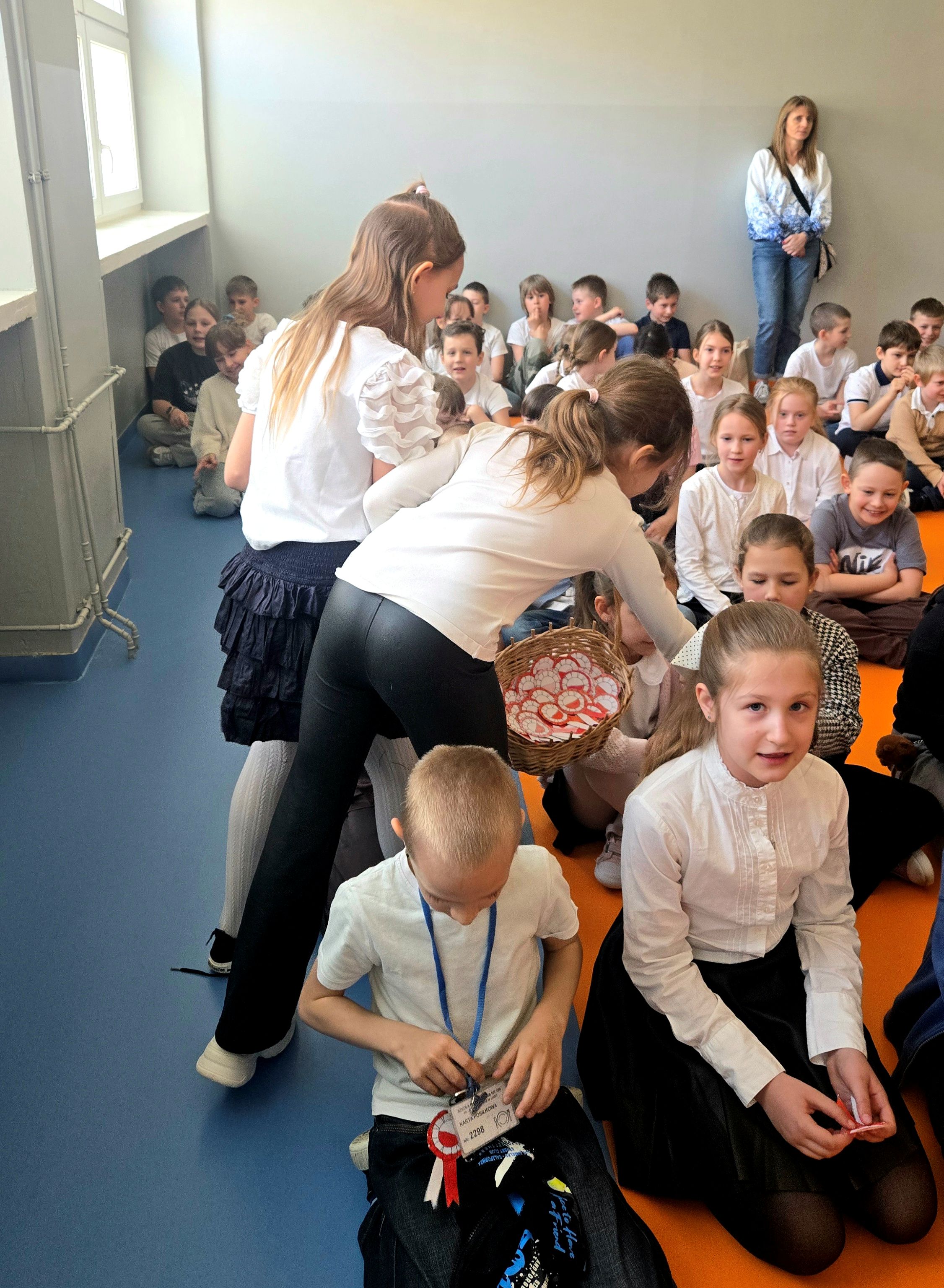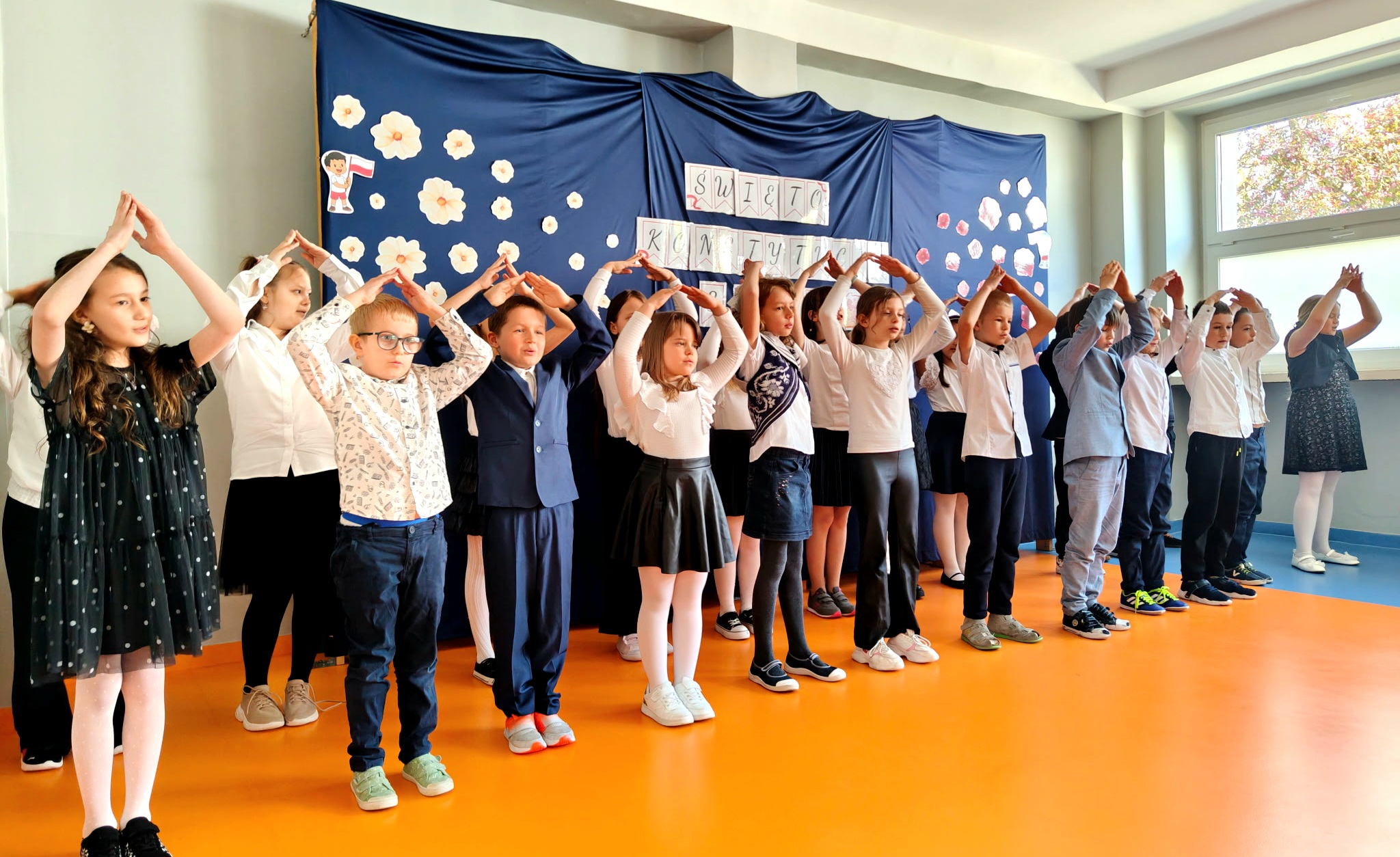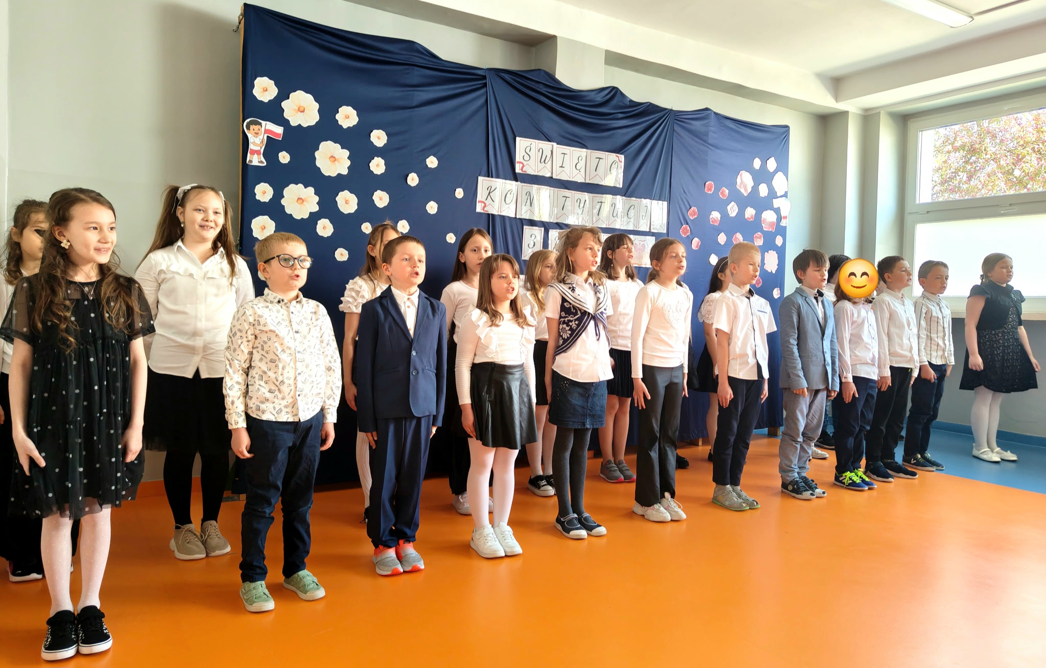 Klasa 2c przygotowała uroczysty apel z okazji Święta Konstytucji 3 Maja. Uczniowie zaprezentowali krótką inscenizację oraz wykonali kilka piosenek, wprowadzając wszystkich w patriotyczny nastrój. Dodatkowo własnoręcznie przygotowali kokardy narodowe, którymi obdarowali koleżanki i kolegów z klas 1 - 3.