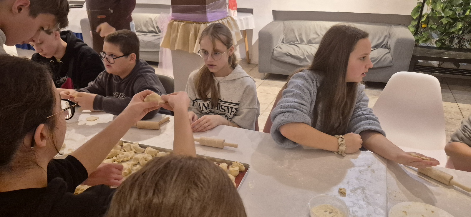 Dnia 19 grudnia klasy 7a i 7c wzięły udział w warsztatach kulinarnych w najstarszej w Łodzi pierogarni Teremok. Po krótkim wprowadzeniu uczniowie poznali etapy przygotowania ciasta i farszu, a następnie samodzielnie lepili pierogi pod opieką prowadzących. Zajęcia przebiegły w miłej i spokojnej atmosferze, sprzyjającej współpracy. Na zakończenie odbyła się degustacja przygotowanych potraw.