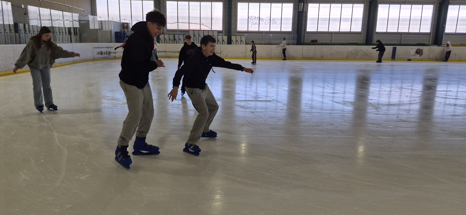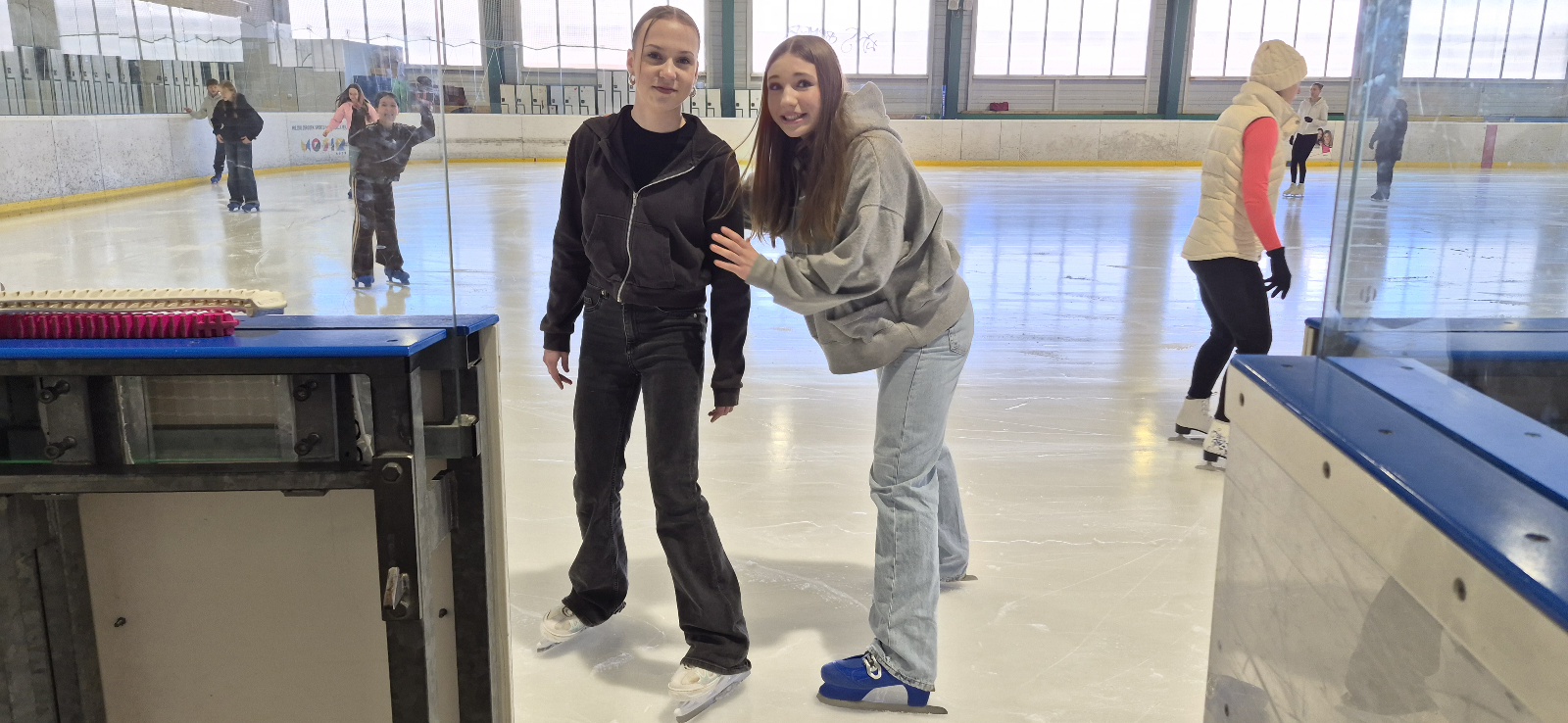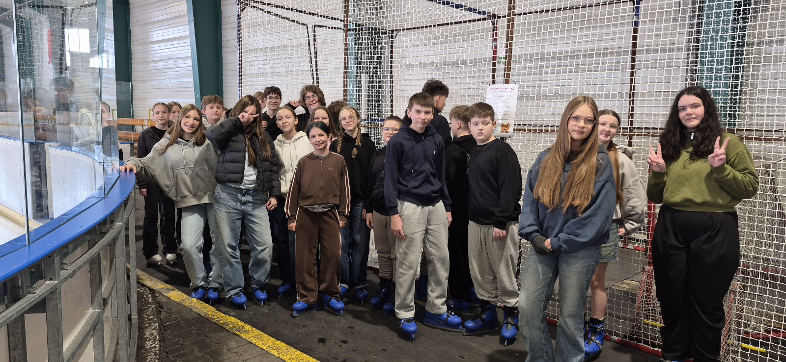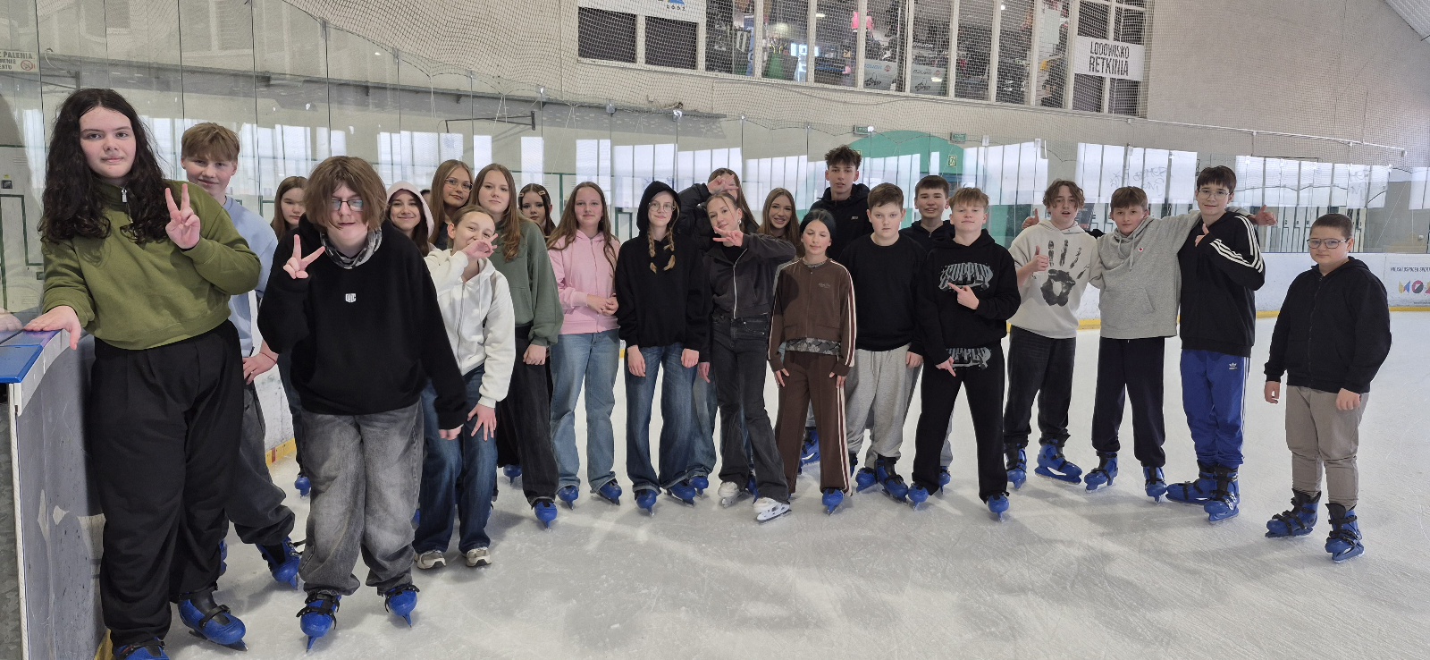 Na początku większość uczniów trzymała się bandy, bo nie każdy czuł się mistrzem olimpijskim. Kilka osób zaliczyło spektakularne (ale na szczęście niegroźne!) upadki. Po chwili jednak wszyscy złapali równowagę i zaczęła się prawdziwa zabawa – wyścigi, jazda w parach, a nawet próby kręcenia piruetów.